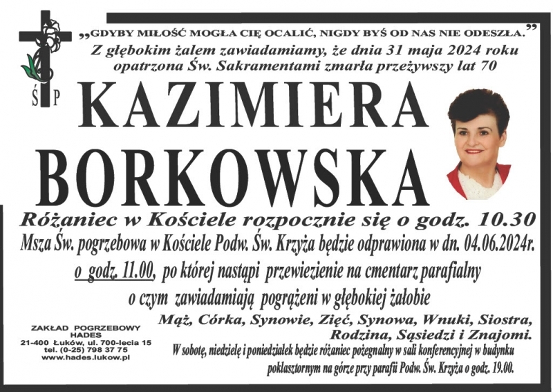 Z żalem żegnamy ŚP. KAZIMIERĘ BORKOWSKĄ, naszego długoletniego członka stowarzyszenia.