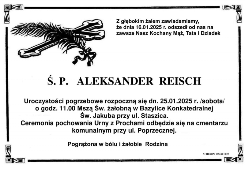 W dniu 16.01.2025 odszedł na wieczną służbę nasz kolega Aleksander Reisch.Ceremonia pogrzebowa odbędzie się 25.01.2025 w Olsztynie - szczegóły poniżej.