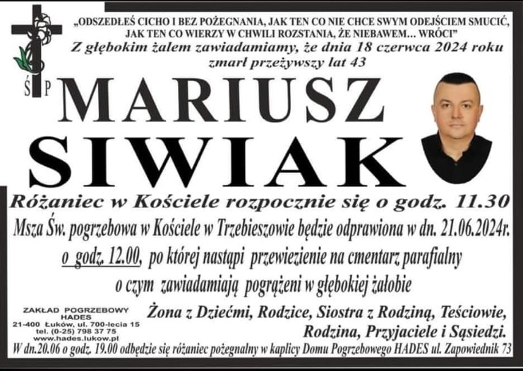 Z żalem żegnamy ŚP. Mariusza Siwiaka, naszego wieloletniego członka stowarzyszenia.