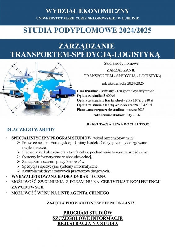 Zarządzanie Transportem-Spedycją-Logistyką UMCS w Lublinie 2024/2025